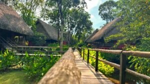Después del recorrido, continuamos nuestro viaje hacia la selva para llegar al Centro Ecoturístico Las Guacamayas, un santuario natural reconocido por la conservación de la guacamaya roja.